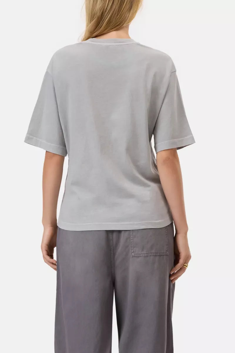 Lekker casual en comfortabel! Dit T-shirt heeft een straight fit en normale lengte, gemaakt van 100% biologische katoen met een natuurlijk vervaagde look. Met ronde geribde hals, drop shoulders en een subtiel borstlogo.