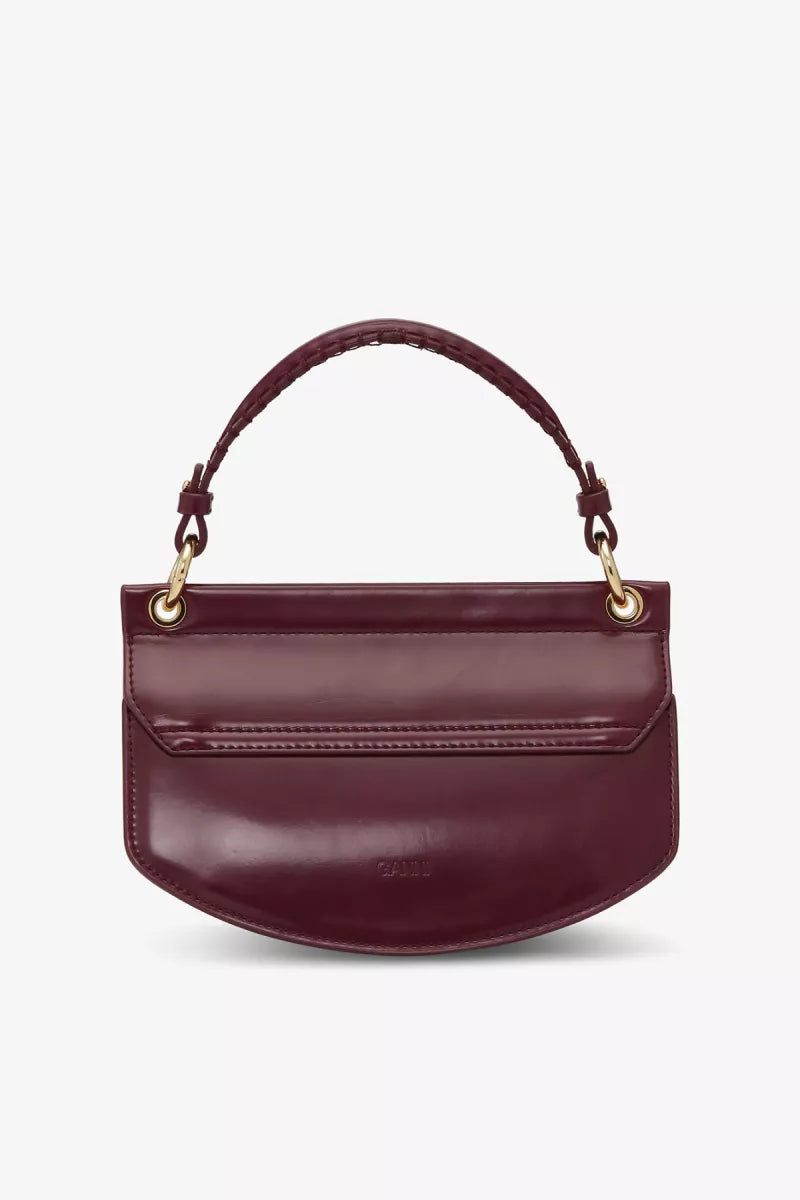 Deze tas heeft een plattere vorm met een bovenhengsel en een verstelbare, afneembare schouderriem. De magnetische sluiting met het gouden GANNI Butterfly logo geeft ‘m een luxe touch. Binnenin vind je een steekvak en drie hoofdvakken, handig en stijlvol tegelijk.