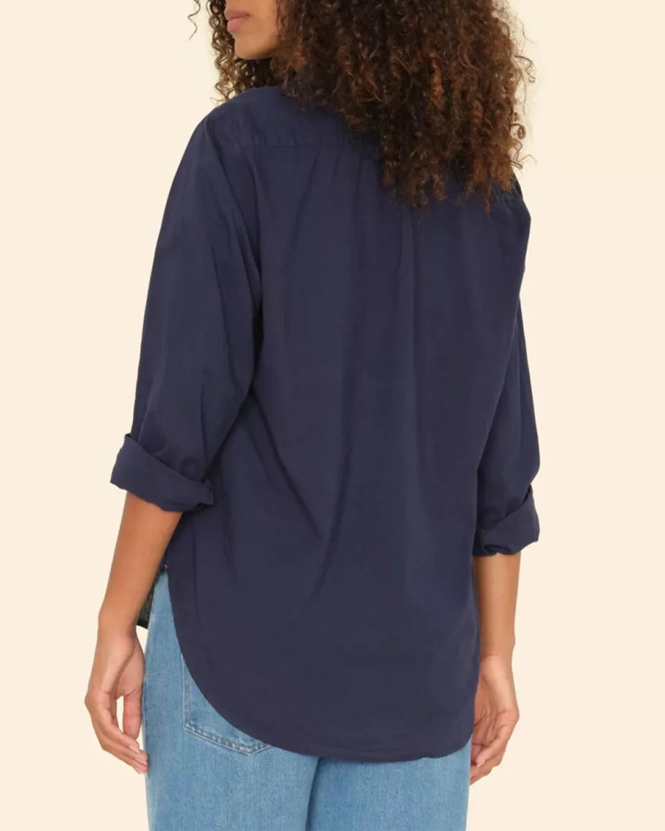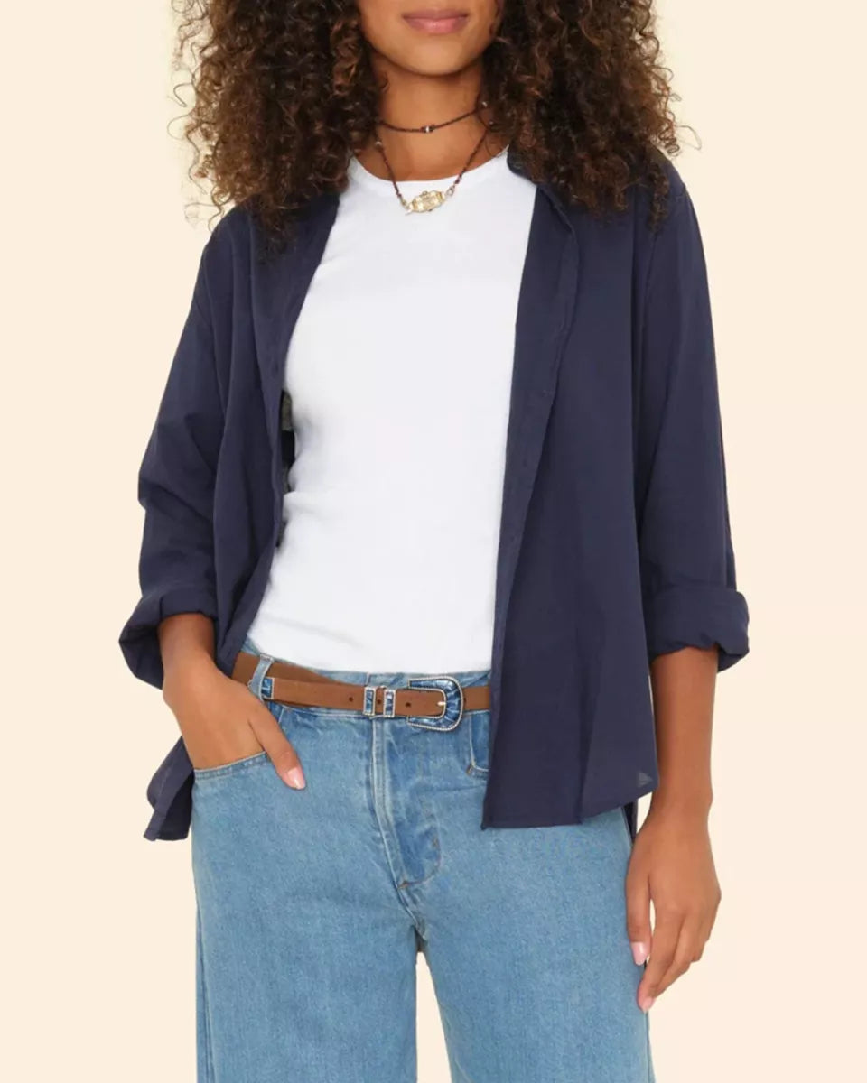 Dit is de perfecte basic! Het shirt is iets korter dan de Sydney Blouse, met lange mouwen die je kunt oprollen voor een casual look. Makkelijk te combineren met alles – of je het nu over een jeans draagt of onder een trui voor een extra laagje.