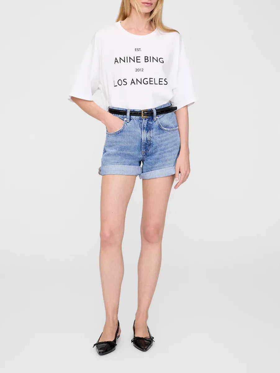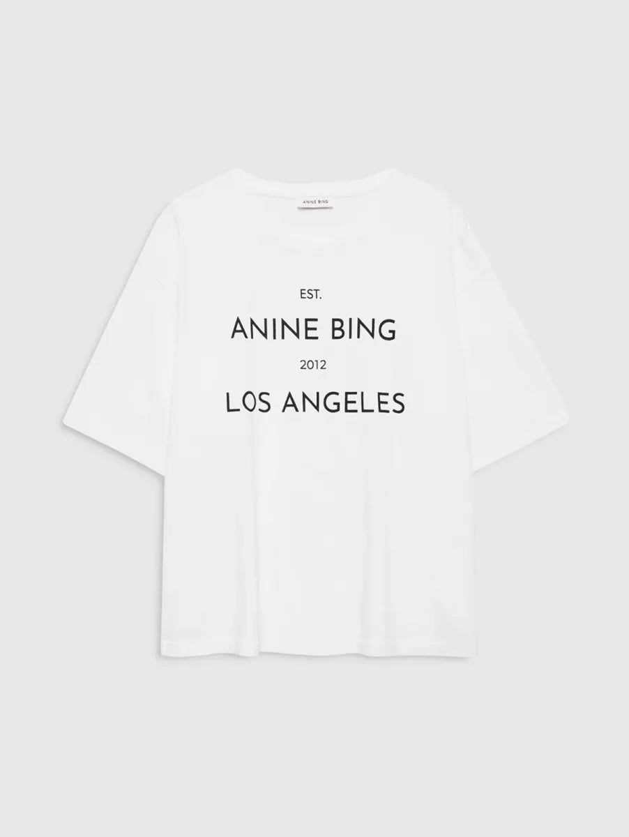 Relaxed T-shirt in een zachte vintage-achtige jersey in ivory. Heeft een brede, ronde hals en een zwarte print op de voorkant. Super comfy en easy om te stylen.