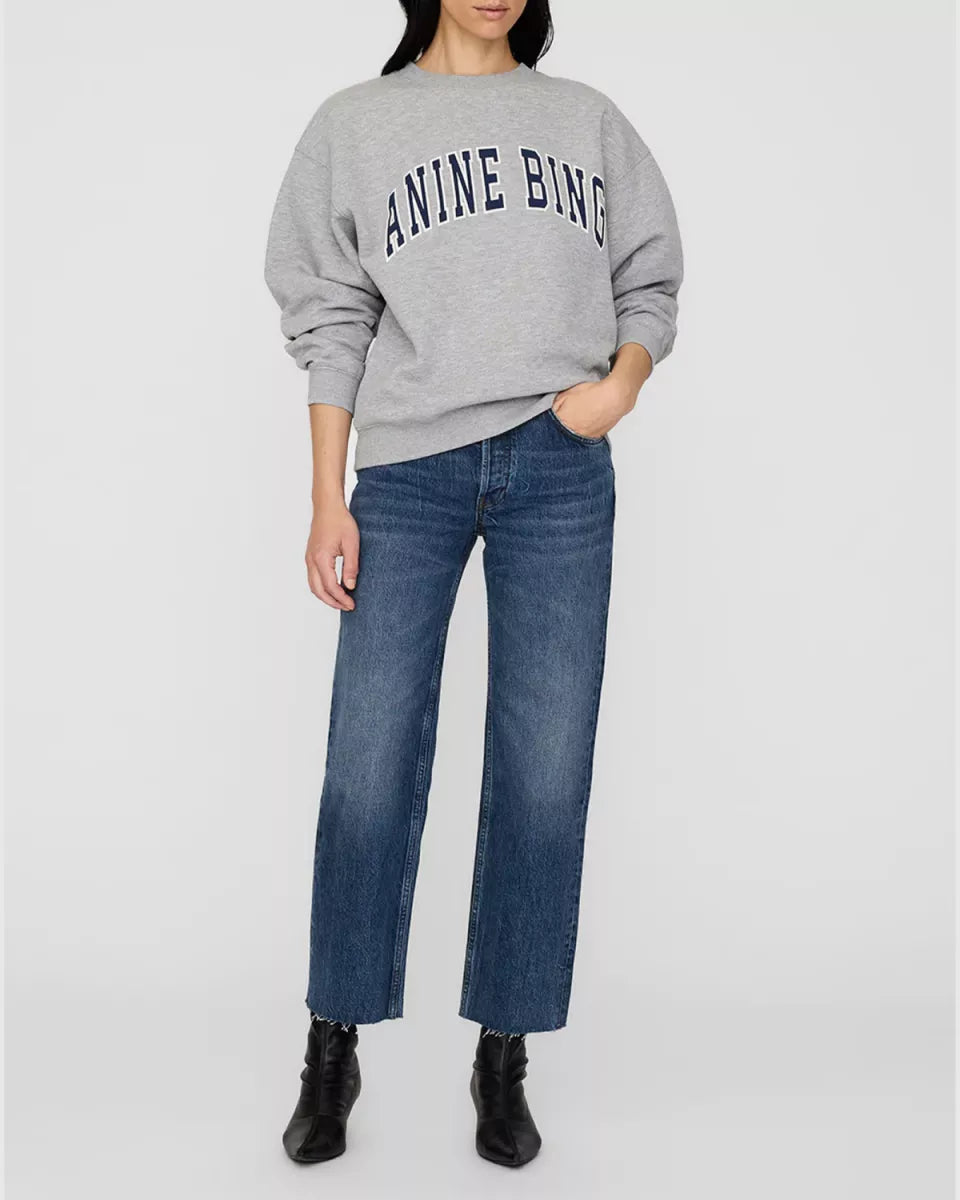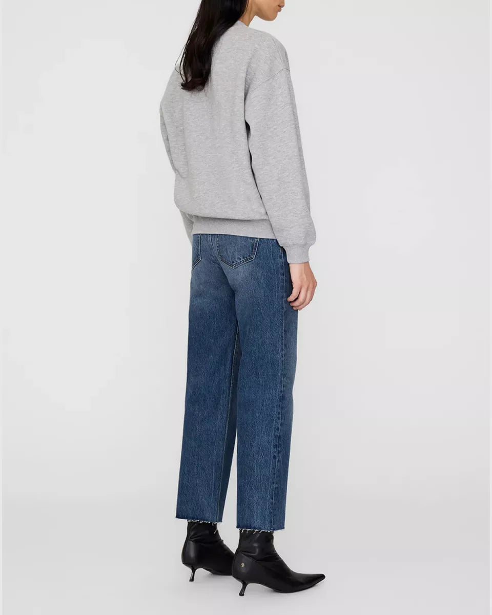 De Spencer Sweater van ANINE BING is een echte everyday essential. Gemaakt van zacht 100% cotton French terry in heather grey, met een cropped, boxy fit voor die effortless cool look. Op de voorkant staat een blauw logo dat de sweater een frisse, tijdloze touch geeft. Heerlijk zacht én makkelijk te combineren met al je favoriete basics.