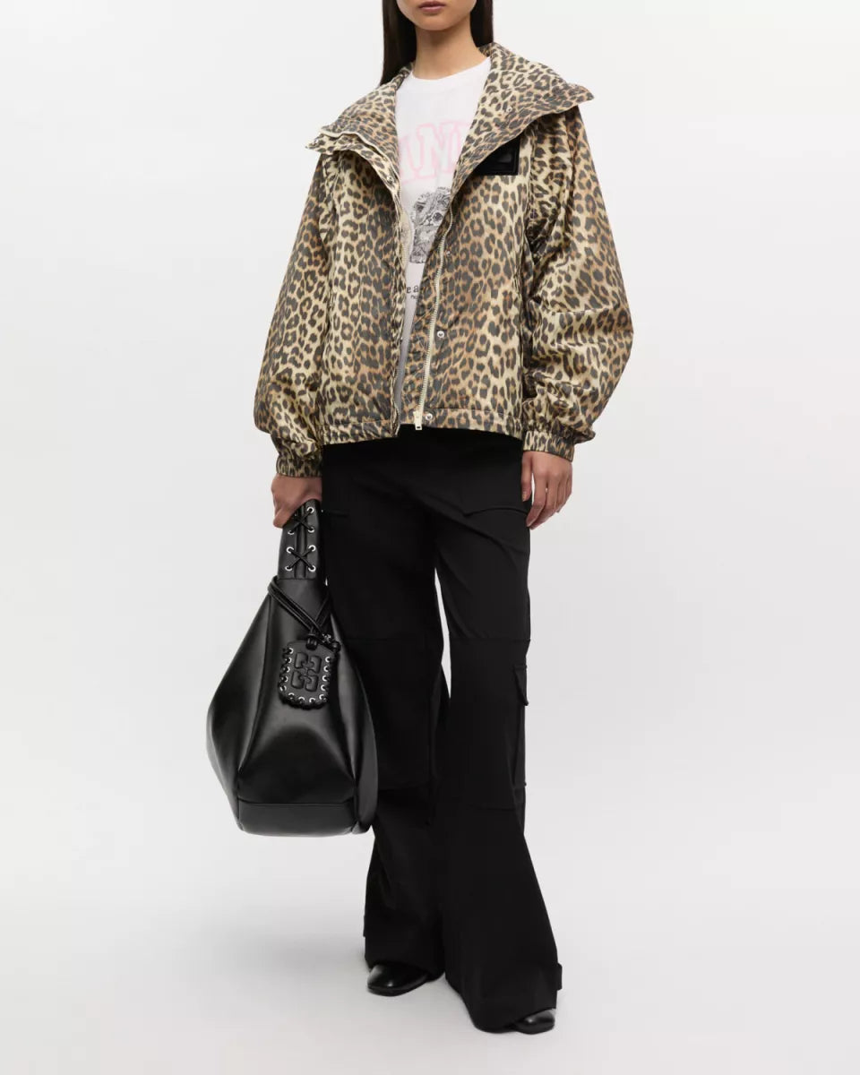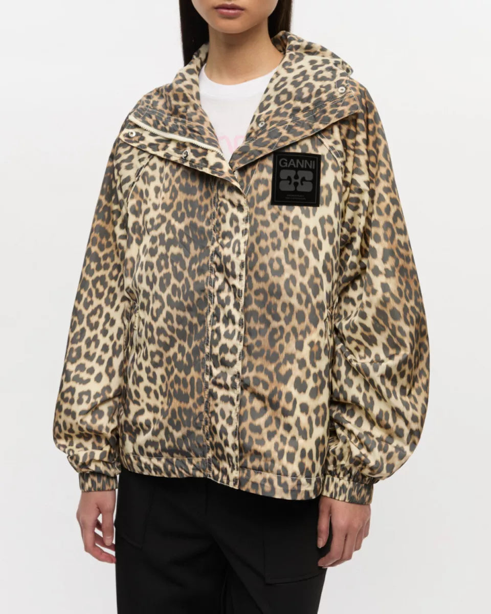 Dit nylon jas van GANNI combineert functionaliteit met stijl. Het ontwerp heeft een capuchon, een rits aan de voorkant en een logo-patch op de borst voor die subtiele branding. Aan de binnenkant vind je verstelbare touwtjes waarmee je de pasvorm naar wens kunt aanpassen. Een stoere everyday essential die je outfit meteen een moderne, sportieve touch geeft (ook verkrijgbaar in zwart).