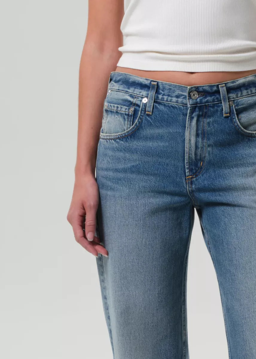 De Lindz is een straight leg jeans met een lage taille gemaakt van zachte, stevige katoen voor een comfy draaggevoel de hele dag. De medium indigo kleur met subtiele vervaging geeft ‘m een vintage touch. Leuk met een T-shirt ingestopt of een cropped jasje voor een casual maar stijlvol resultaat.