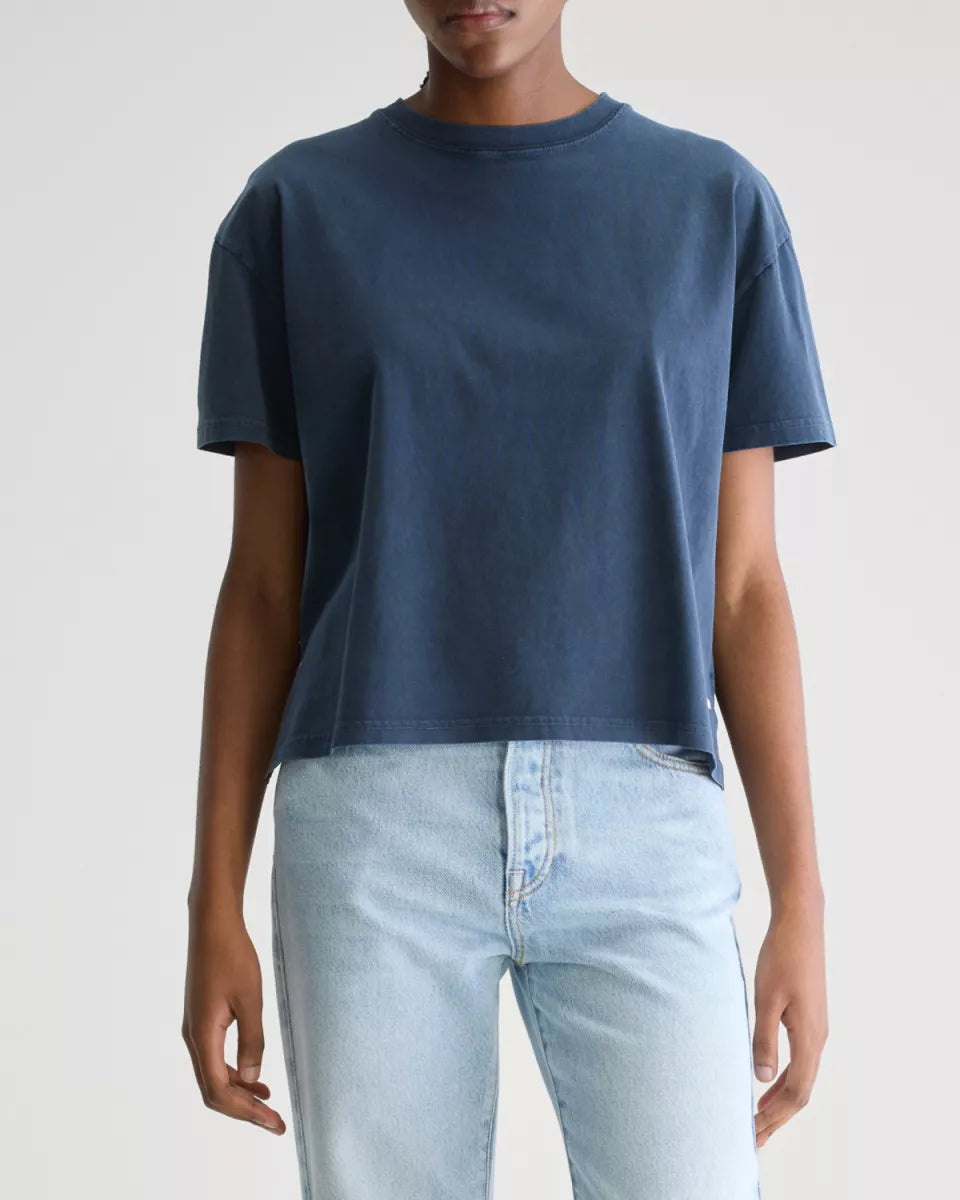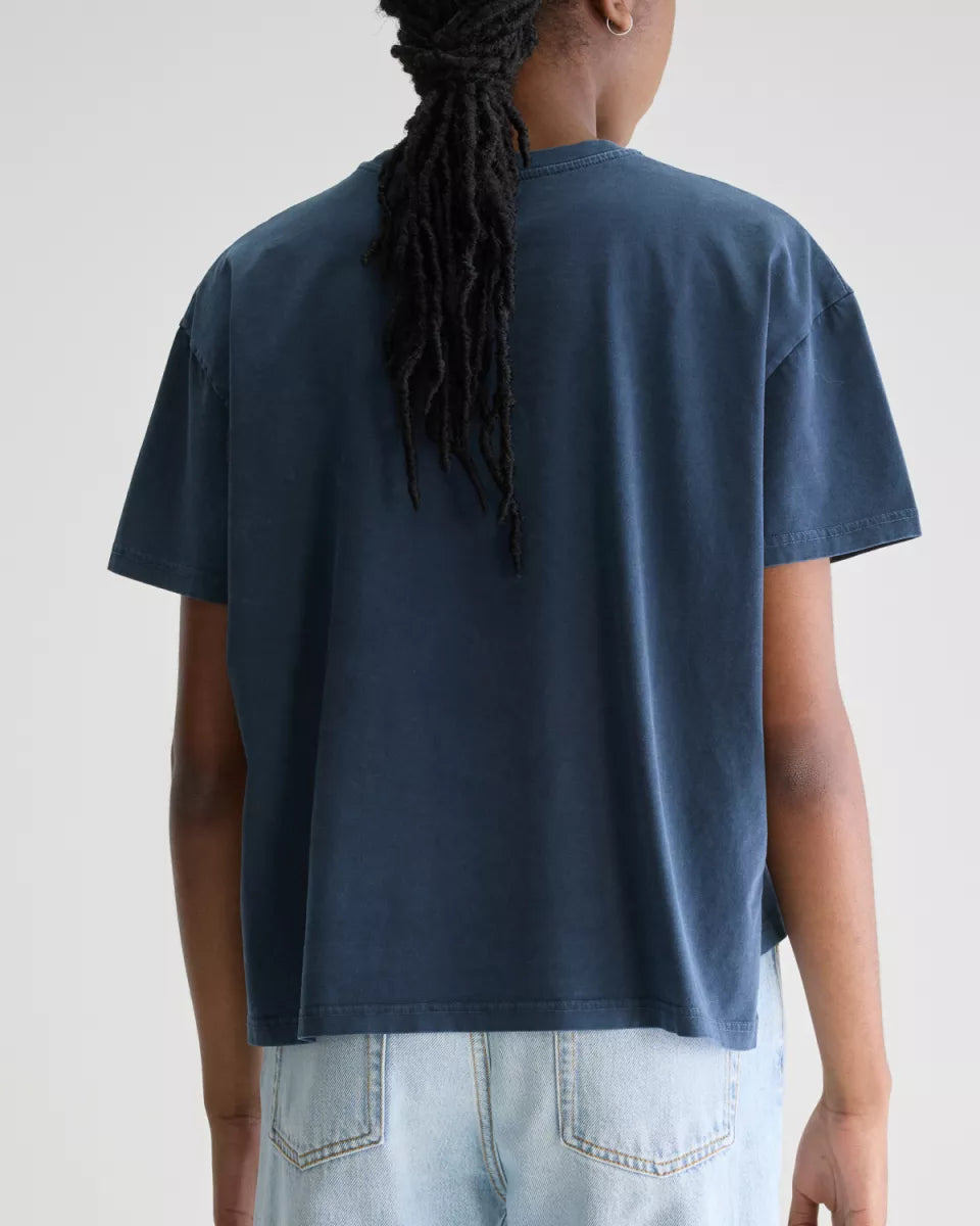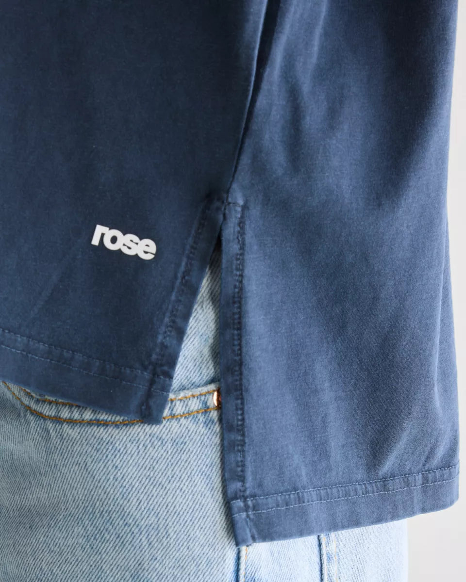 De Felio Tee is dé perfecte basic! Marineblauw, zacht katoen, rechte pasvorm en kleine zijsplitjes voor een relaxed fit. Met ronde hals en een subtiel rood ‘rose’ logo.