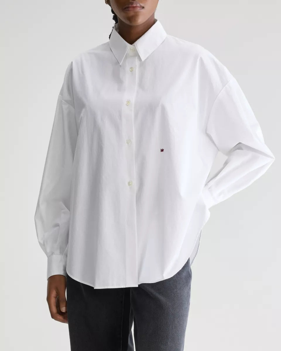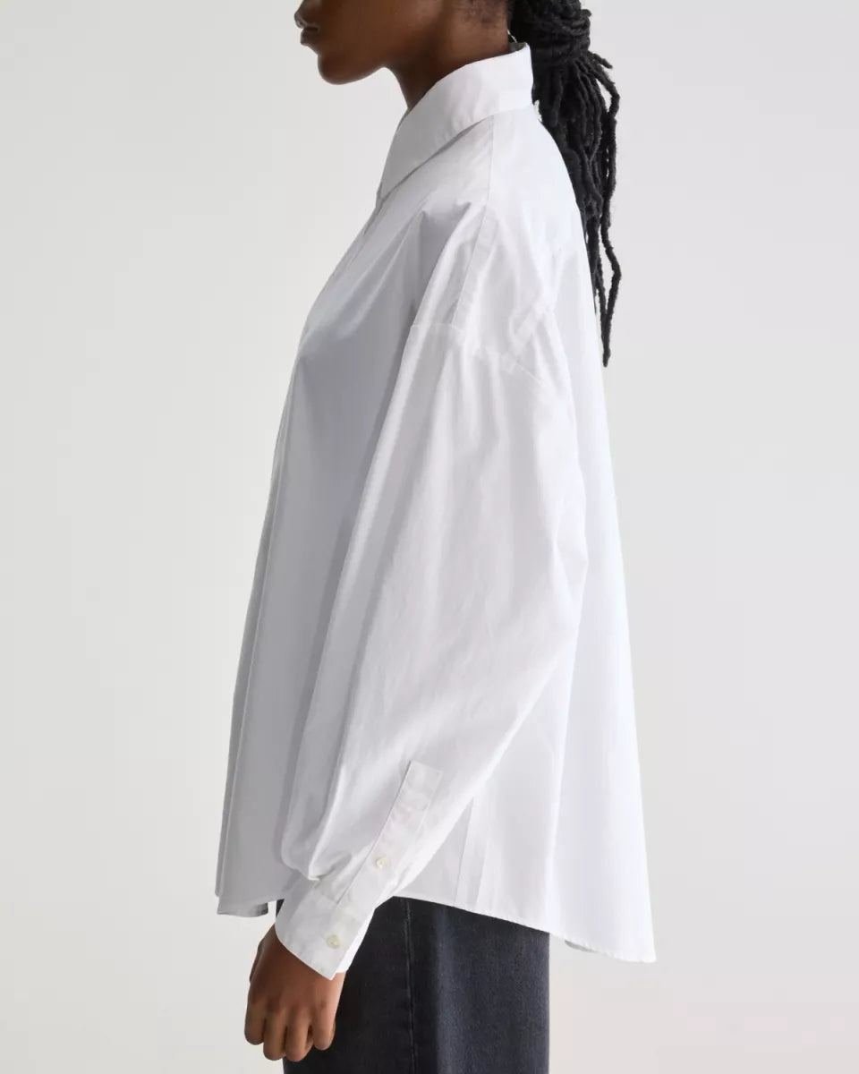 De Gillian Blouse is een oversized, witte blouse met lage schouders en klassieke puntkraag. Met subtiel ‘blr’-borduursel en een extra knoopje aan de zijkant om de pasvorm aan te passen. Stoer, comfy en net even anders dan je standaard blouse. Ook verkrijgbaar in blauw.