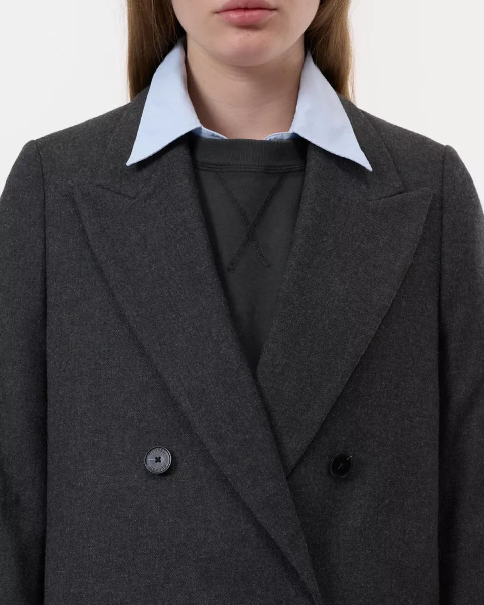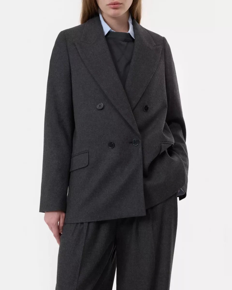 Deze double-breasted blazer heeft een getailleerde pasvorm en een slanke, elegante look. Afgewerkt met een brede revers, ton-sur-ton beklede knopen en een binnenzak. Mooi te combineren met de bijpassende pantalon voor een complete suit look.