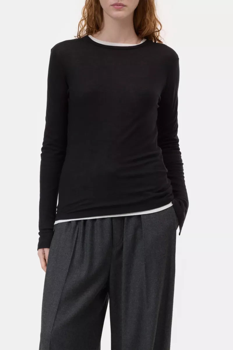 Simpel, maar oh zo stijlvol! Deze fitted longsleeve met ronde hals heeft clean lines en een tijdloze look die je eindeloos kunt combineren. De mix van katoen en modal geeft de rib-jersey die heerlijke zachte touch waar je niet meer zonder wil. Subtiel detail: het kleine Closed-labeltje langs de zijnaad.