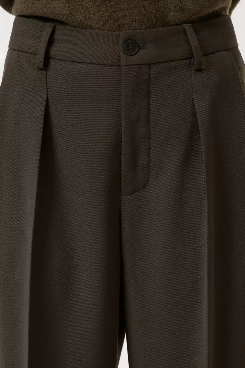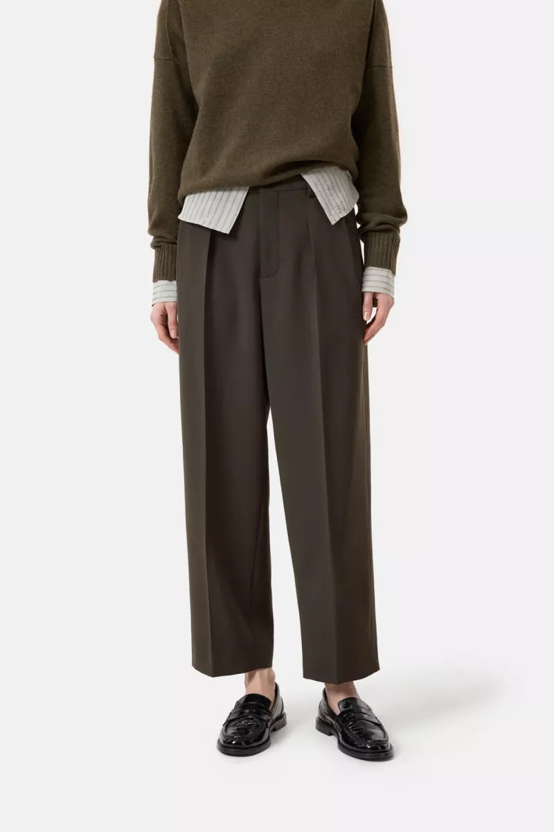 Wijde, comfortabele broek met mid-rise die fijn zit! Gemaakt van een zachte stretch-wolmix en voorzien van mooie plooien voor een chique touch. Met handige achterzakken en nette stiknaden, stijlvol én comfy.