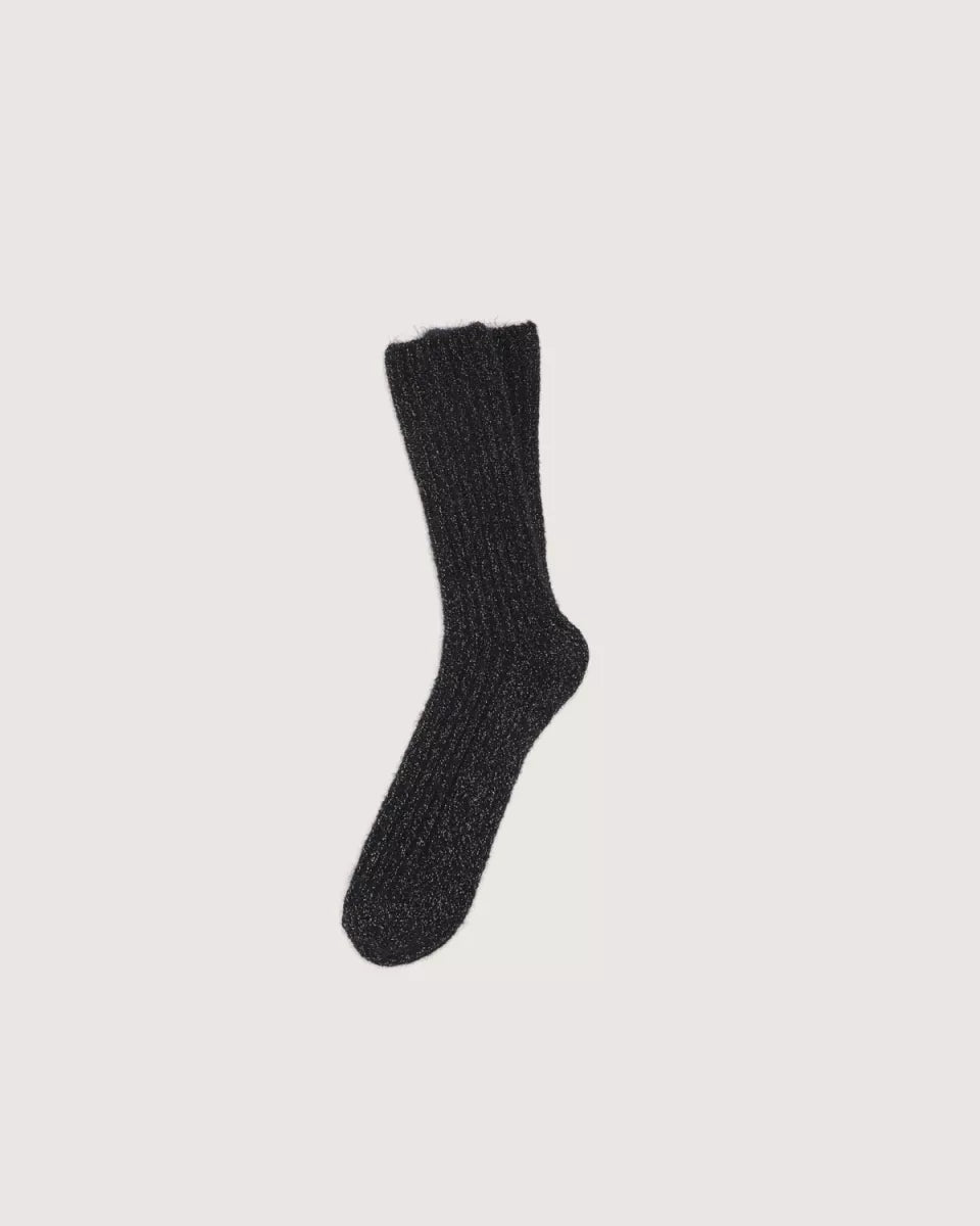 Deze ivoorwitte sokken geven een sprankje vrolijkheid aan je outfit! Gemaakt van zachte ribtricot met een subtiel glanzend lurexgaren voor nét dat beetje sparkle (ook verkrijgbaar in bruin, ivoor en blauw).