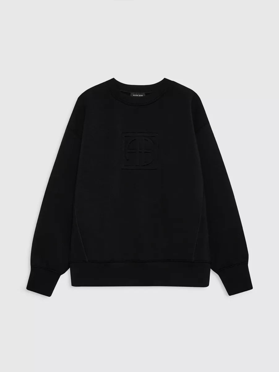 Oversized sweatshirt van zware scuba-stof met een zachte, gladde feel. Ribdetails bij de zijkanten en aan de mouwen, een grote zak voorop en een embossed framed monogram. Comfortabel en stoer tegelijk.
