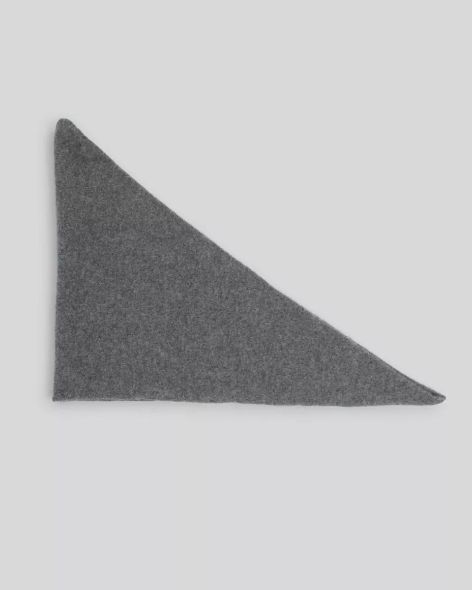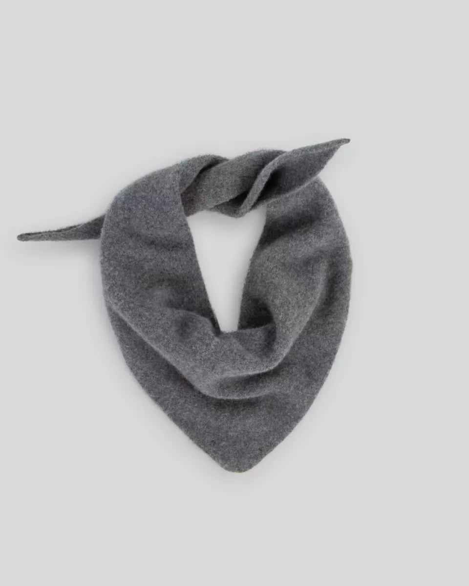 Bandana Slate Grey is een antraciete bandana van Le Bonnet met een zachte wolmix die licht aanvoelt en tegelijk warmte biedt. De driehoekige vorm maakt ‘m geschikt om op verschillende manieren te knopen en te dragen, bijvoorbeeld over een T shirt of sweater. Uitgevoerd in een effen kleur zonder print en geproduceerd in Schotland.