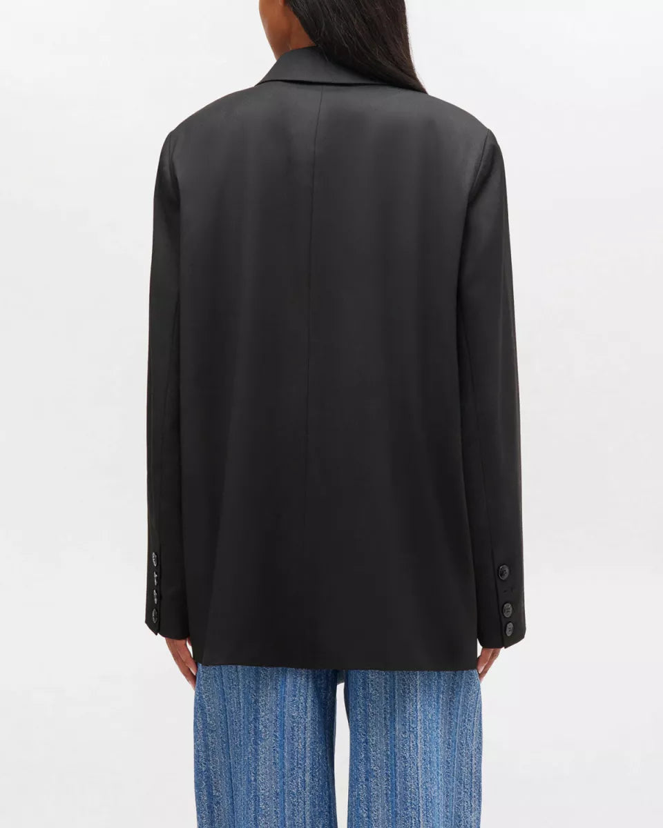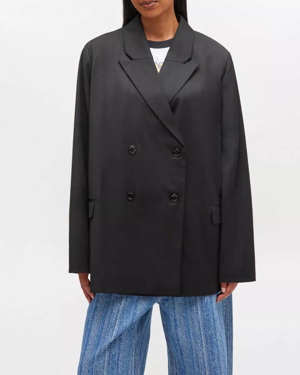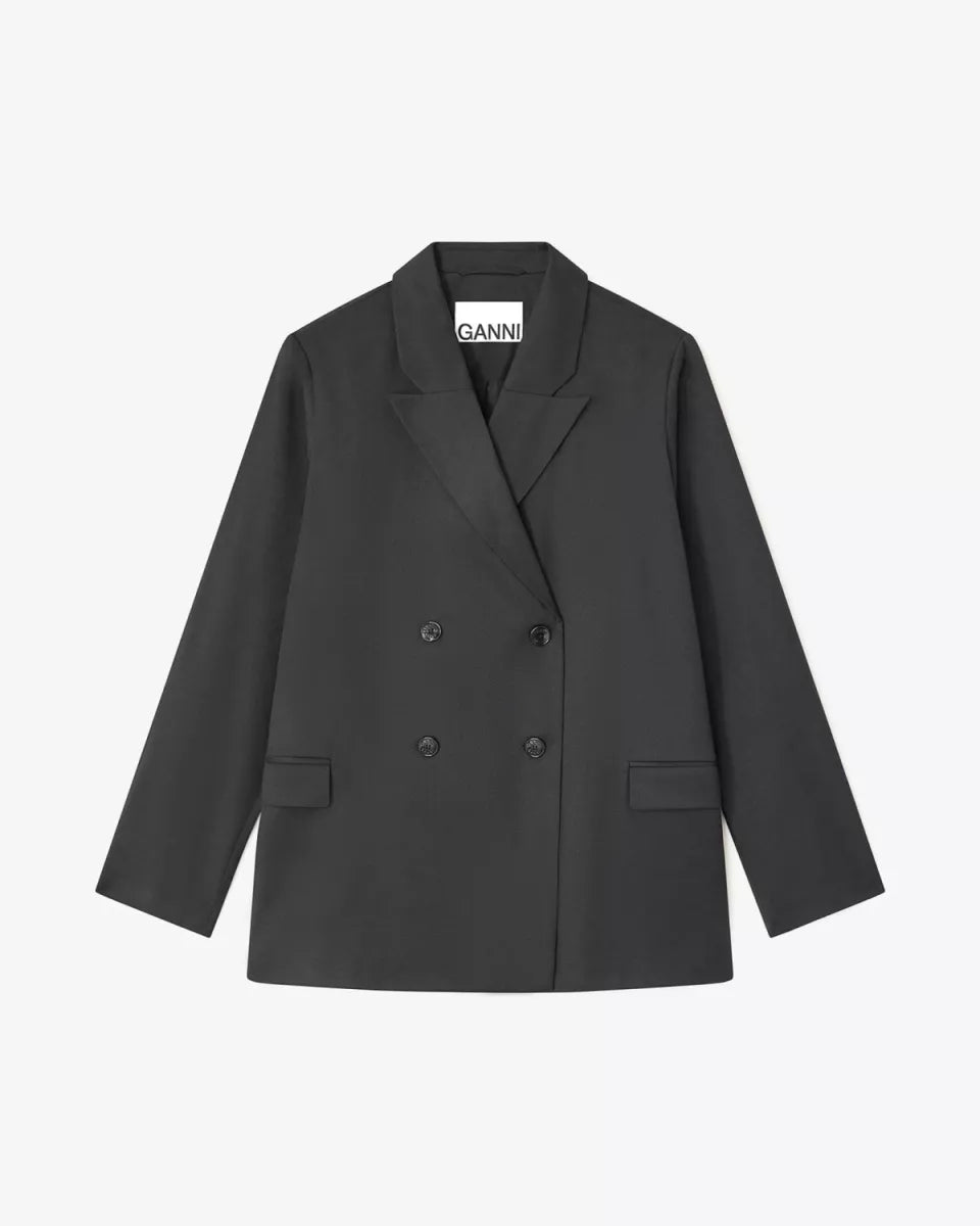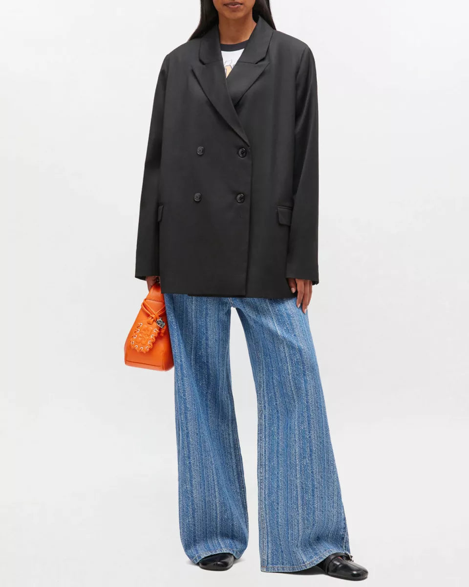 Deze double breasted blazer van GANNI is een echte alleskunner. Met de kraag, notch-lapels en twee steekzakken kun je alle kanten op: combineer ’m met de bijpassende pantalon voor een matchy look, neem ’m een maat groter en draag ’m stoer met boots, of ga chic met een jurk. Een blazer die je outfit meteen een moderne twist geeft.