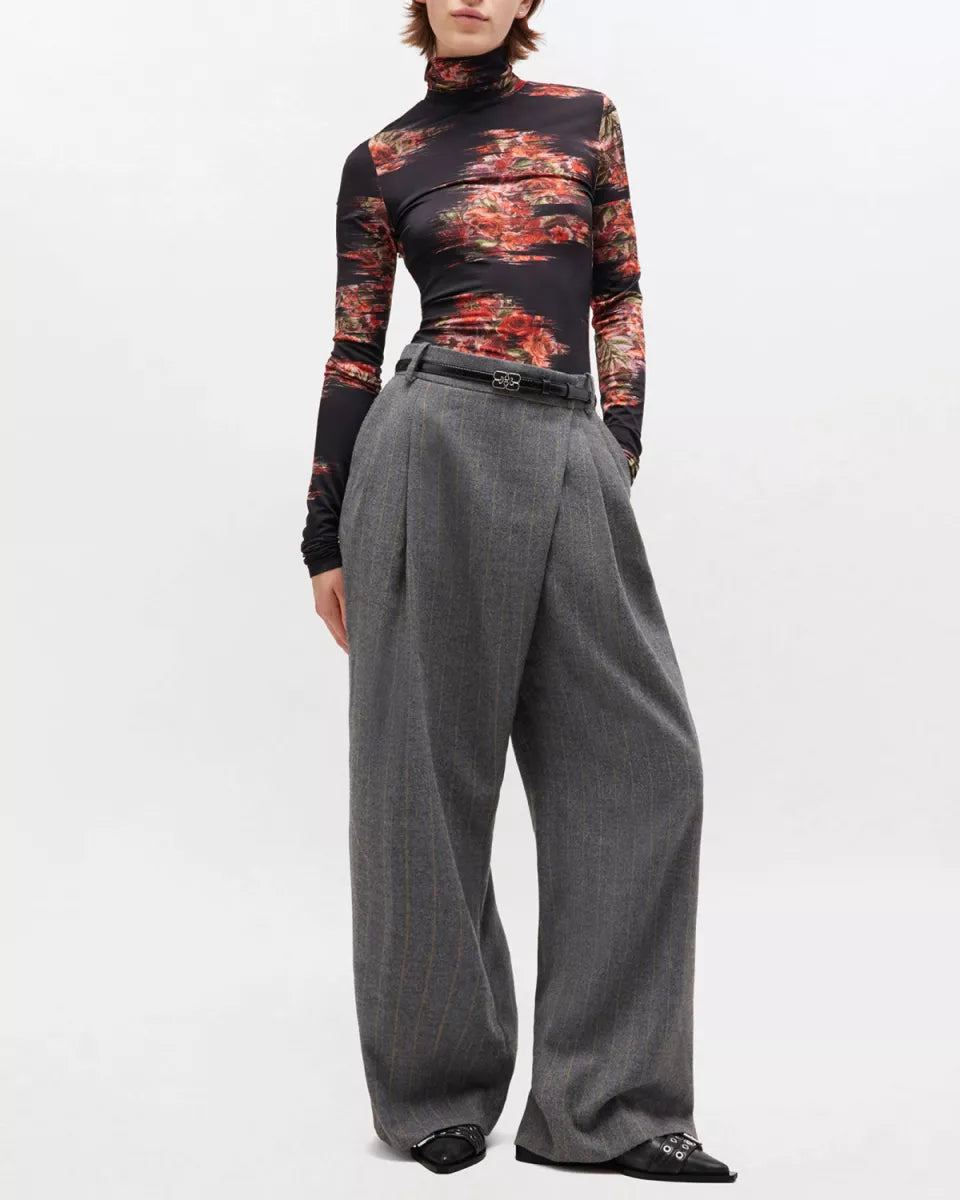 Superleuke broek met overslag, voorzien van een haak- en oogsluiting, ceintuurlussen en steekzakken aan de zijkant. Het cross-over detail aan de voorkant geeft ‘m een stijlvolle twist. Ook verkrijgbaar in zwart.