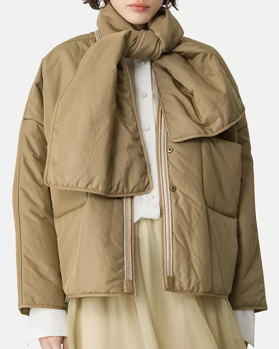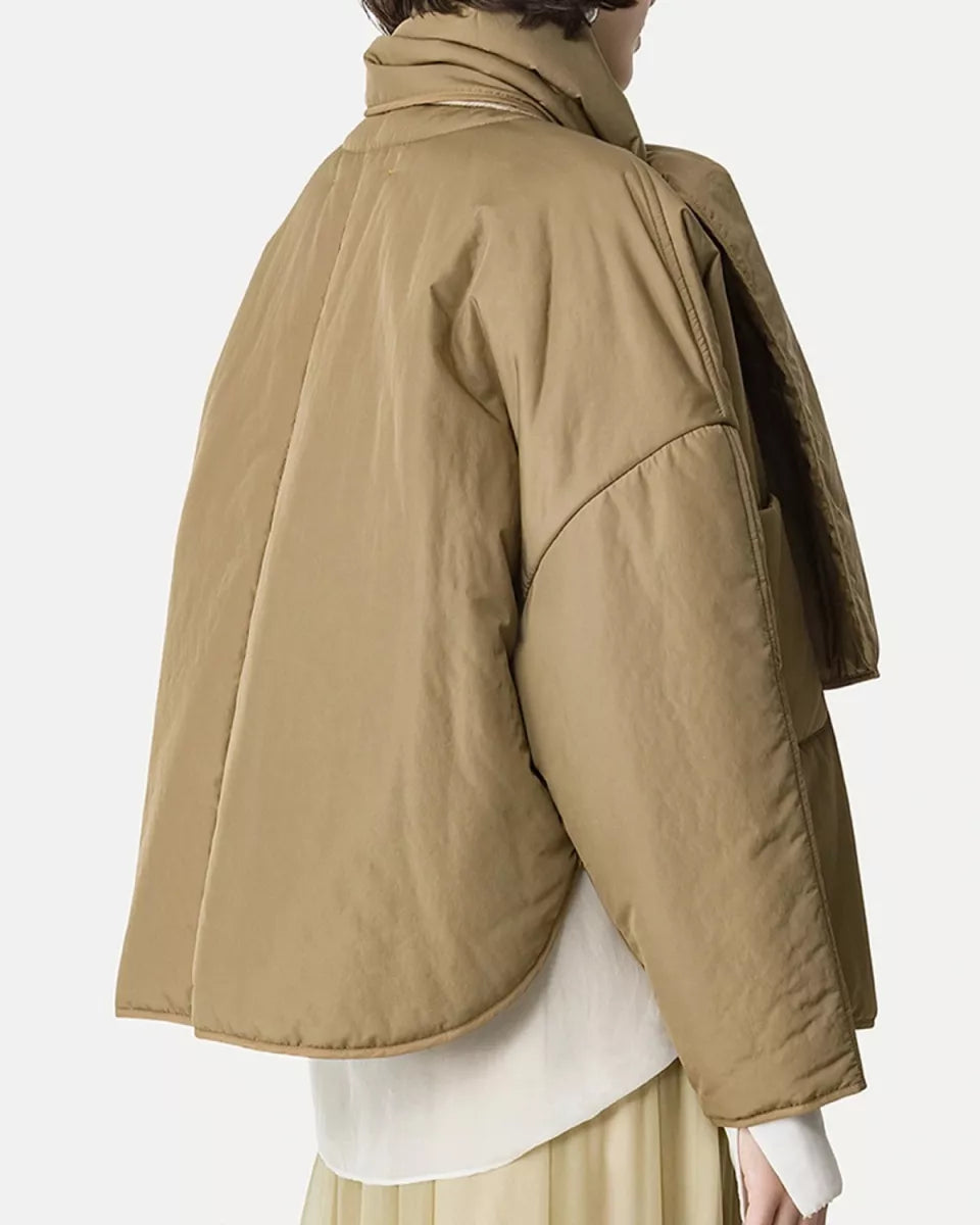 • Korte boxy fit• Afneembare gewatteerde sjaal