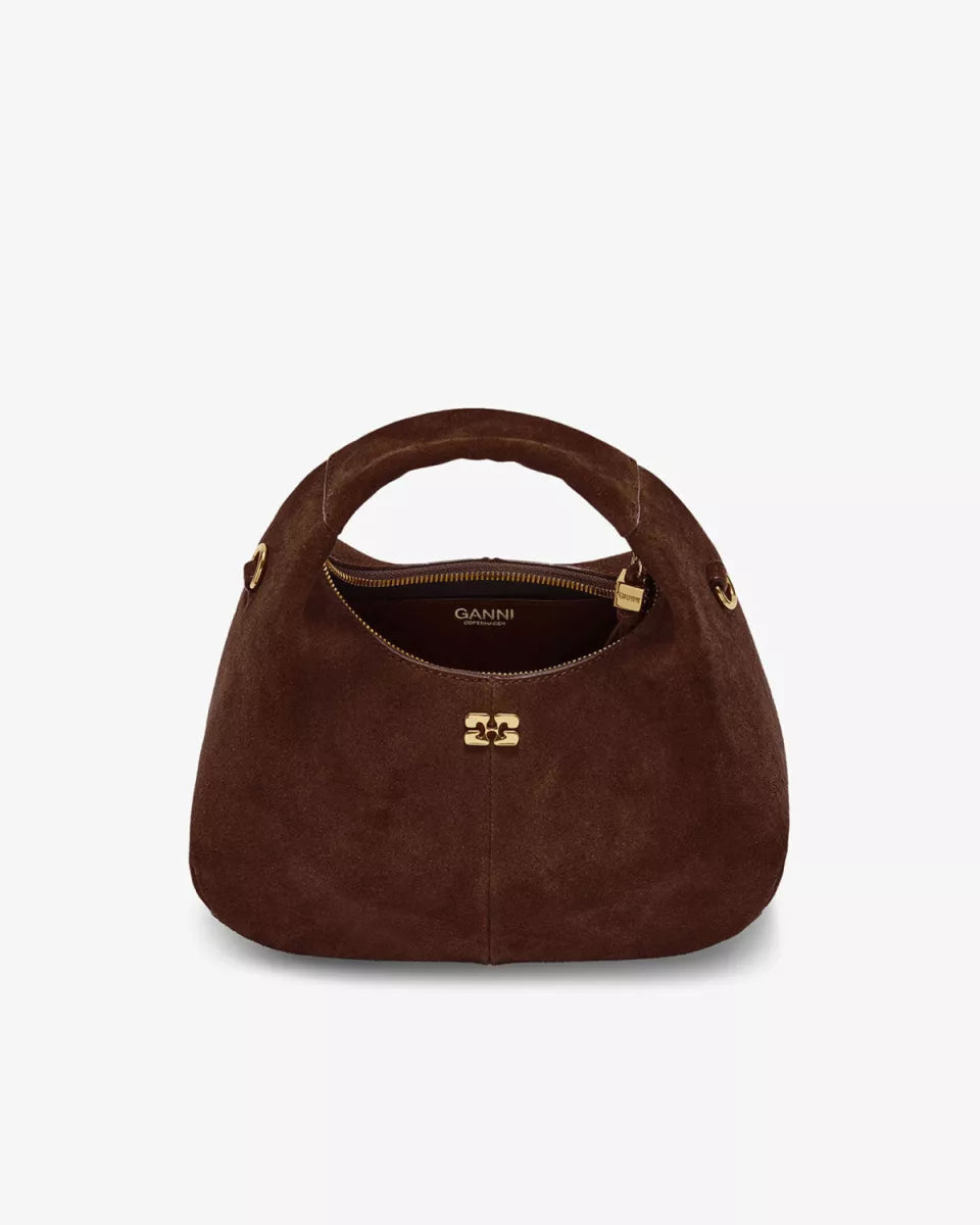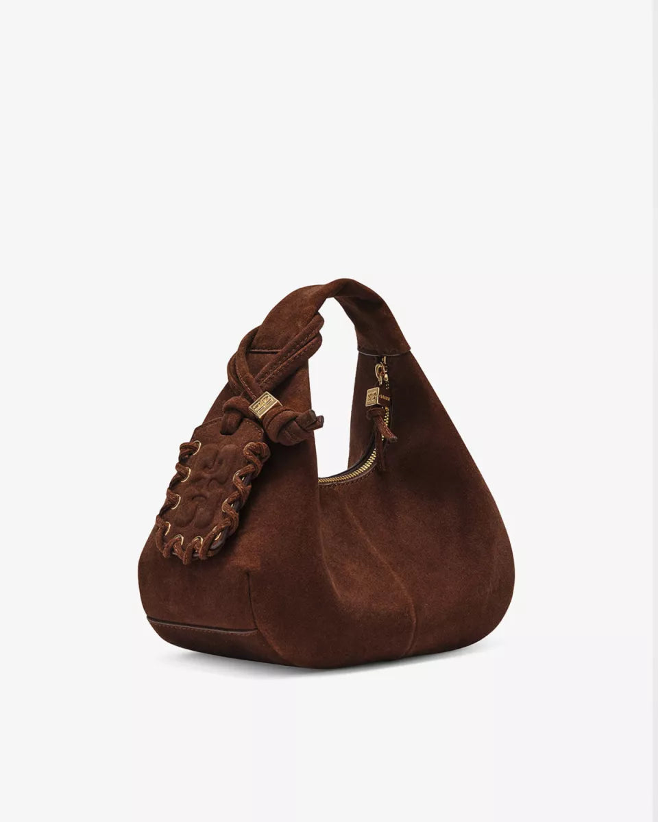 Ganni Hobo Mini Rec Suede Pelinova in Bruin