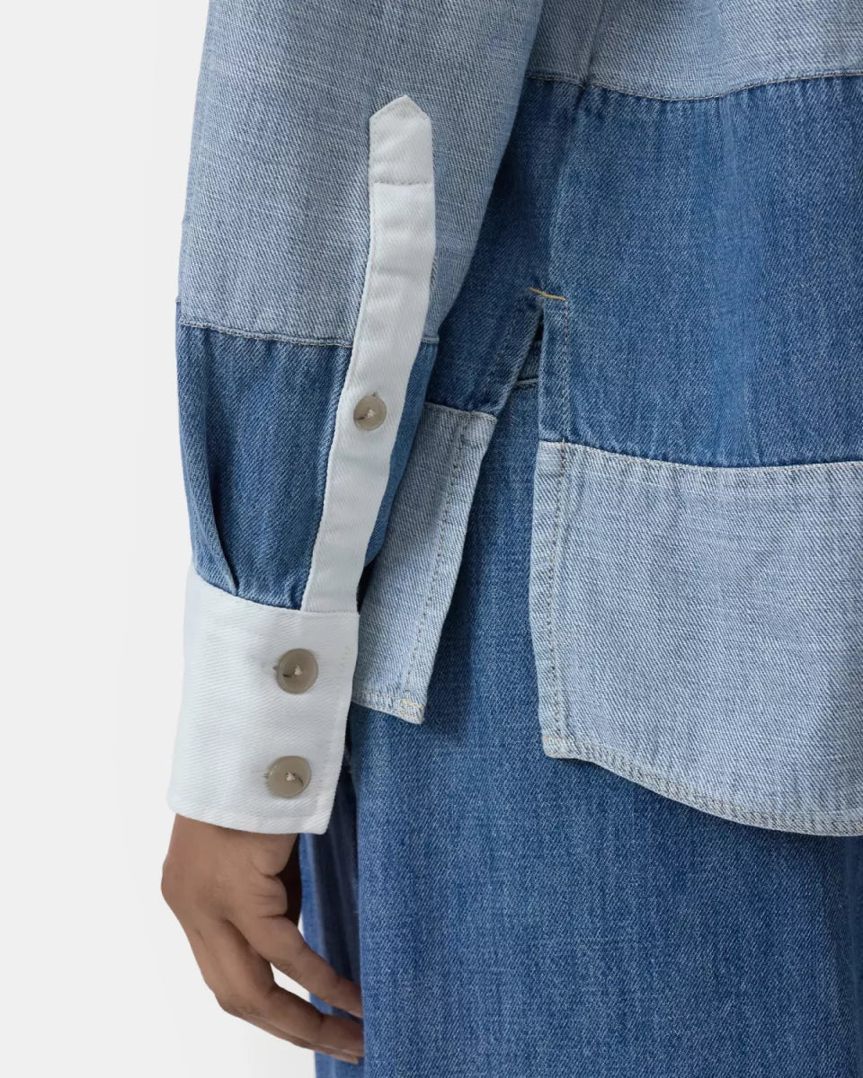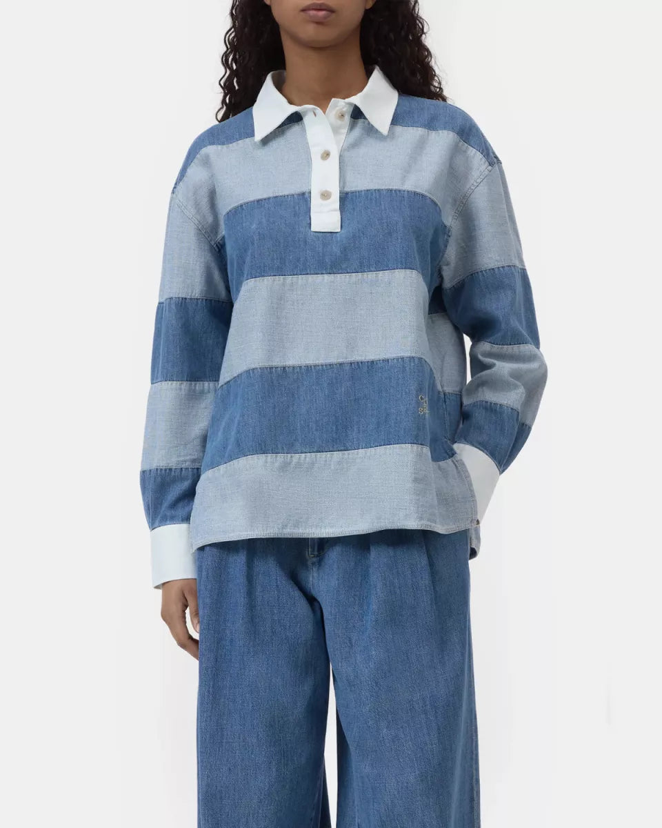 - Brede denimblauwe strepen